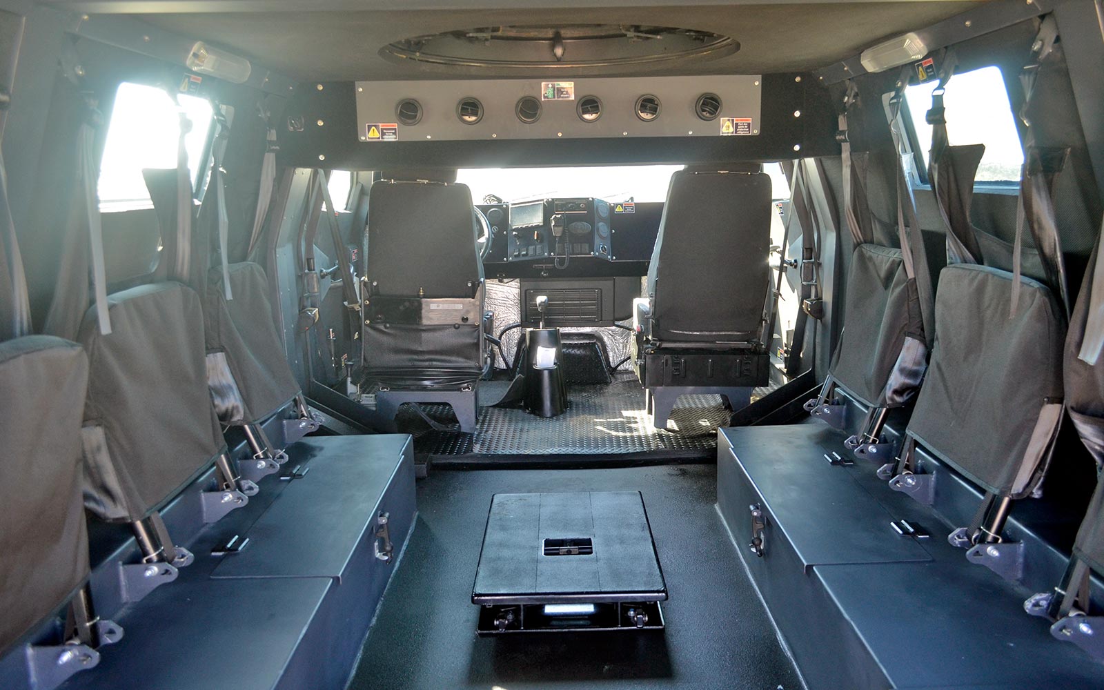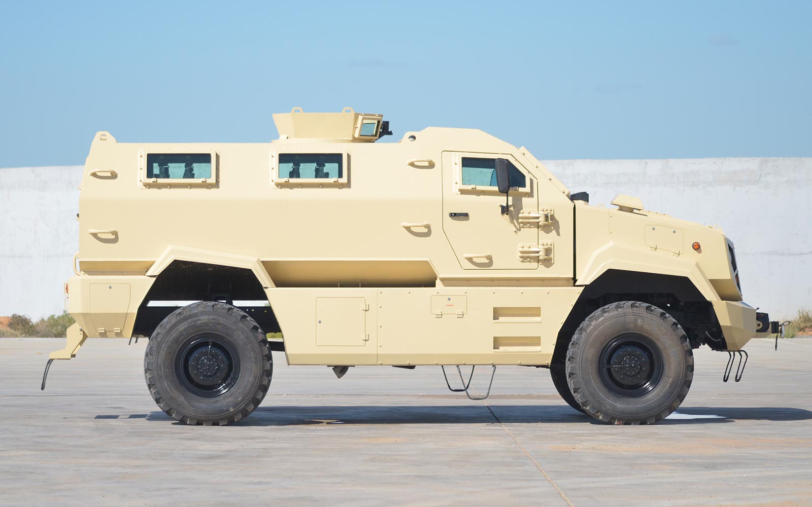The Tornado 4×4 Armored Personnel Carrier / MRAP is suitable for all types of mounted infantry troop movement such as long-range patrols, convoy support and escort duties and is large enough to be configured to form a command-and-control unit or medical evacuation platform. It has large oversized tires for good off-road capability and benefits from an integral tire inflation system. The vehicle offers advanced protection for the occupants against both blast and ballistic threats, up to STANAG 4569 Level 3. Crew capacity consists of driver, commander, 8 dismounts and a gunner; vehicle interior can be customized upon request.