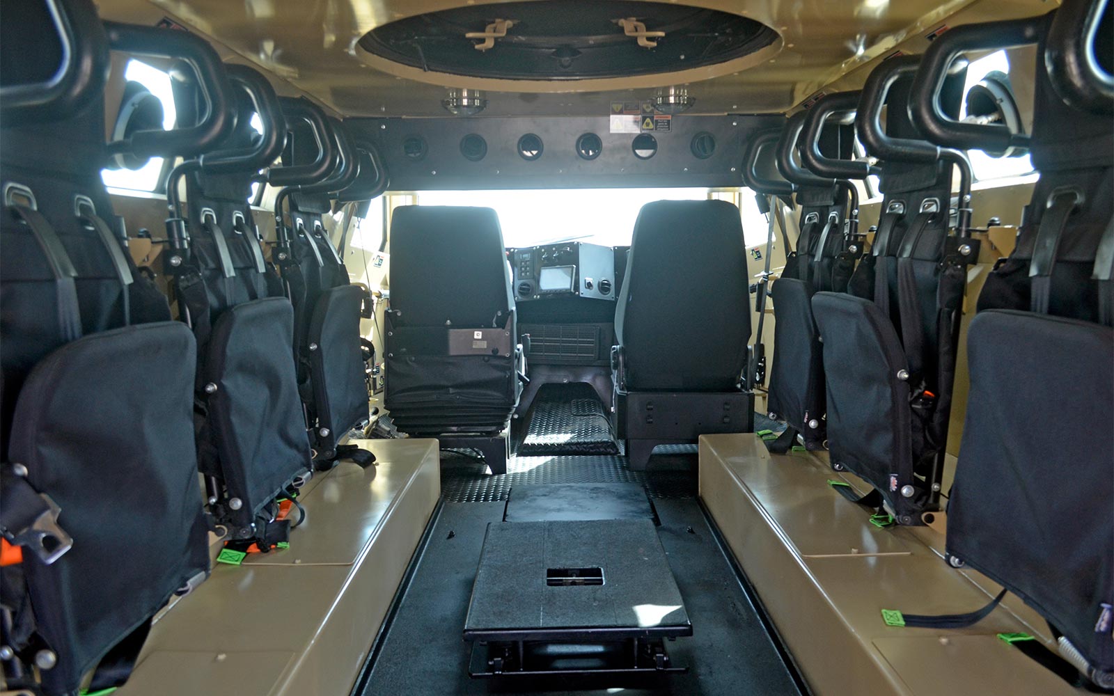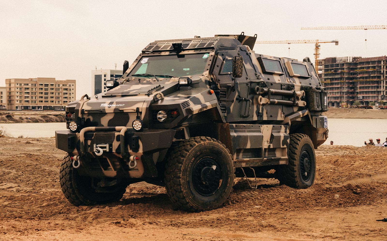 TYPHOON 4×4 is a Mine Resistant Ambush Protected Vehicle / MRAP which is used primarily as a mounted infantry troop carrier and ground support vehicle for dismounted troops and can be easily configured as command-and-control vehicle, medical evacuation platform or as a forward observation platform (FOO). The vehicle offers its occupants blast protection to STANAG 4569 Level 3. TYPHOON features a V-shaped monocoque armored hull design that offers advanced protection to the 10-man crew. TYPHOON benefits from superior off-road mobility. The crew capacity consists of a driver, commander, 8 dismounts and a gunner.
